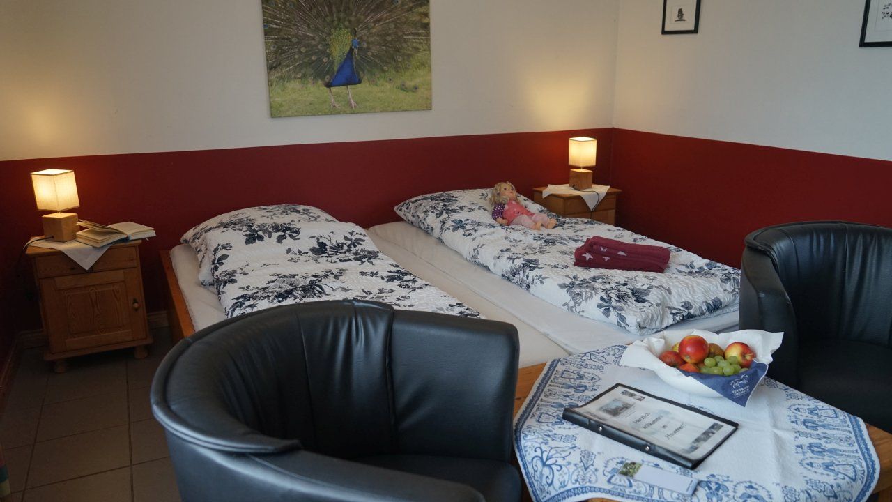 im Erdgeschoss in unserem Ferienhaus “Remise” 50m über einen Weg mit dem Hof verbunden für bis zu 6 Personen