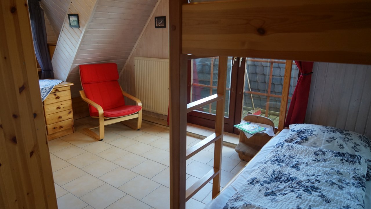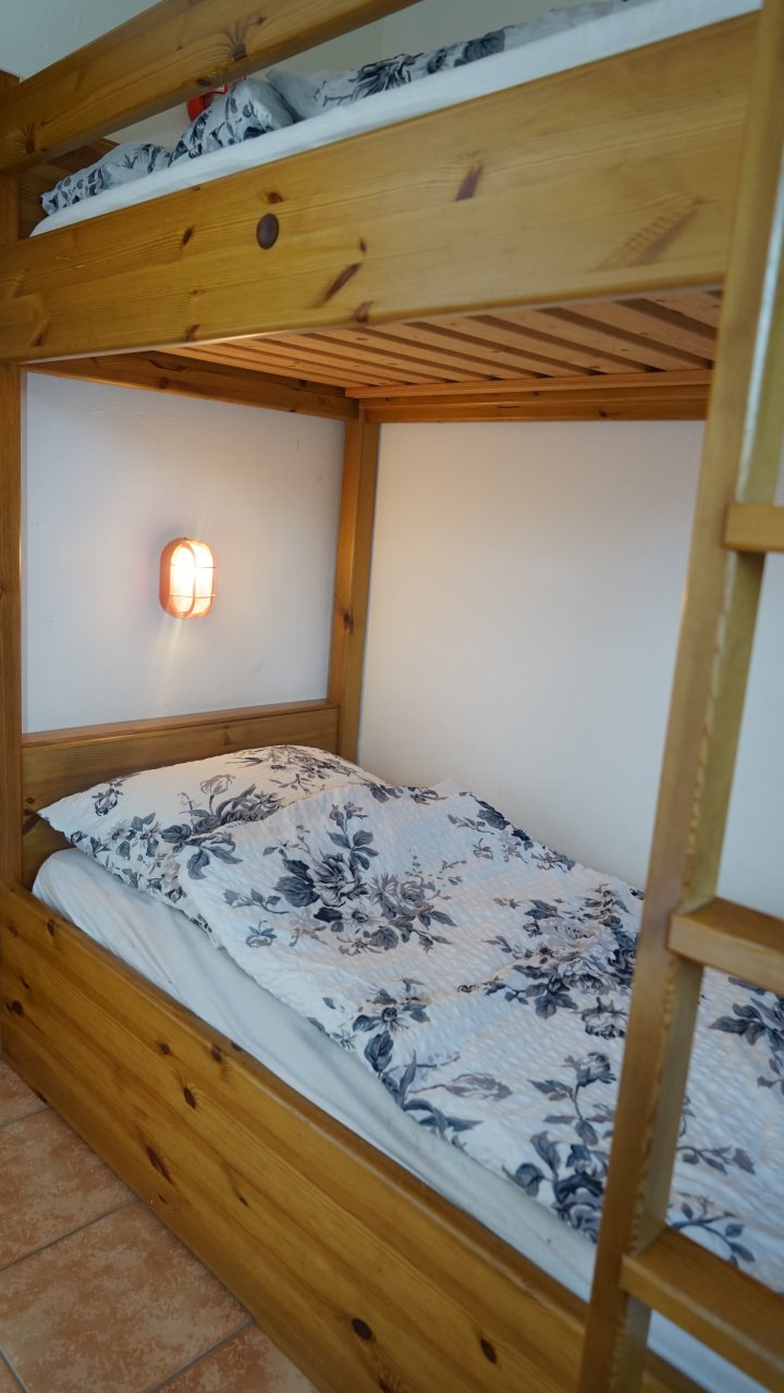Das Appartementhaus hat im Erdgeschoss einen Wohnbereich mit Sitzgruppe mit TV und Schlafbereich mit einem Ehebett und Dusche WC, das Kinderzimmer im ersten Stock hat vier Einzelbett
